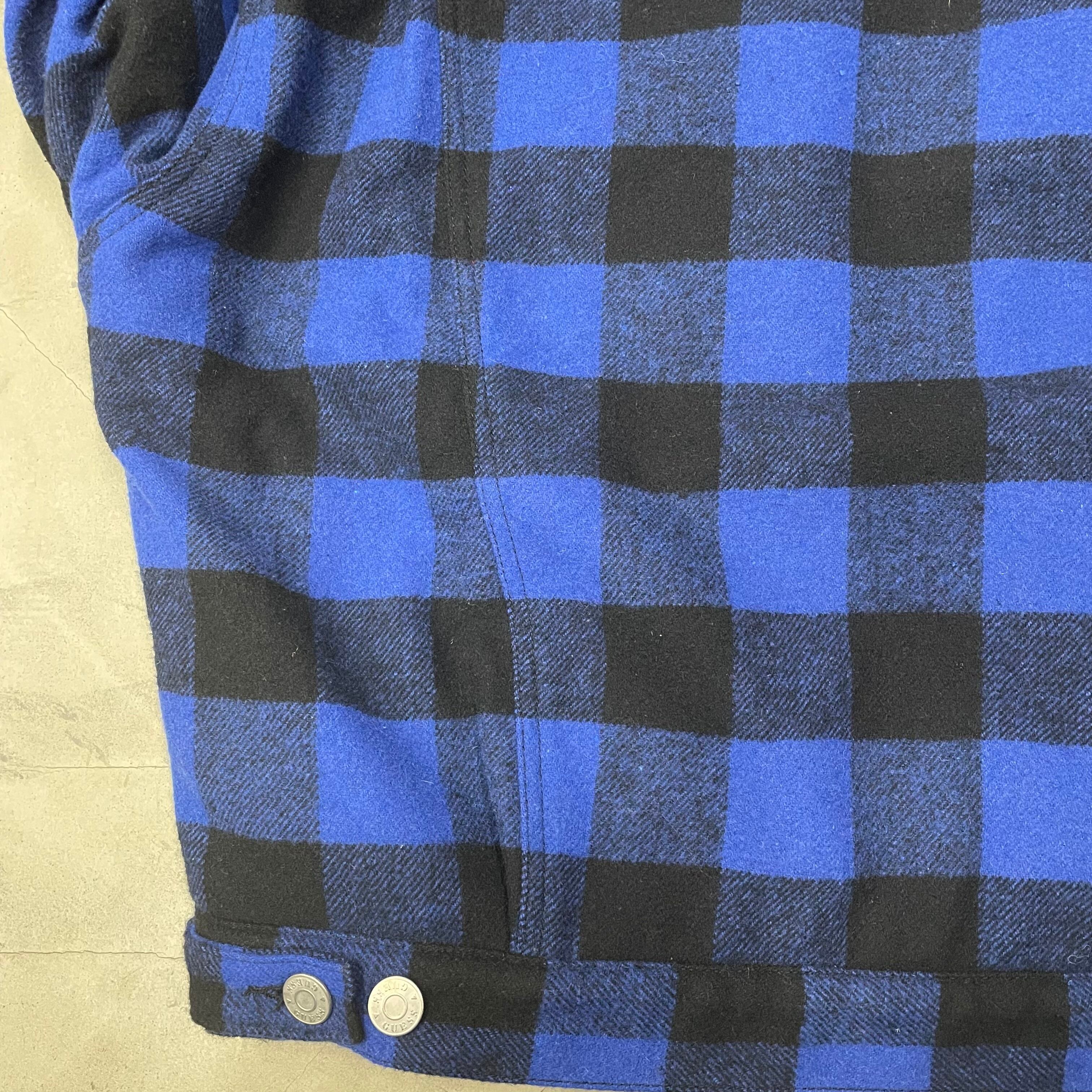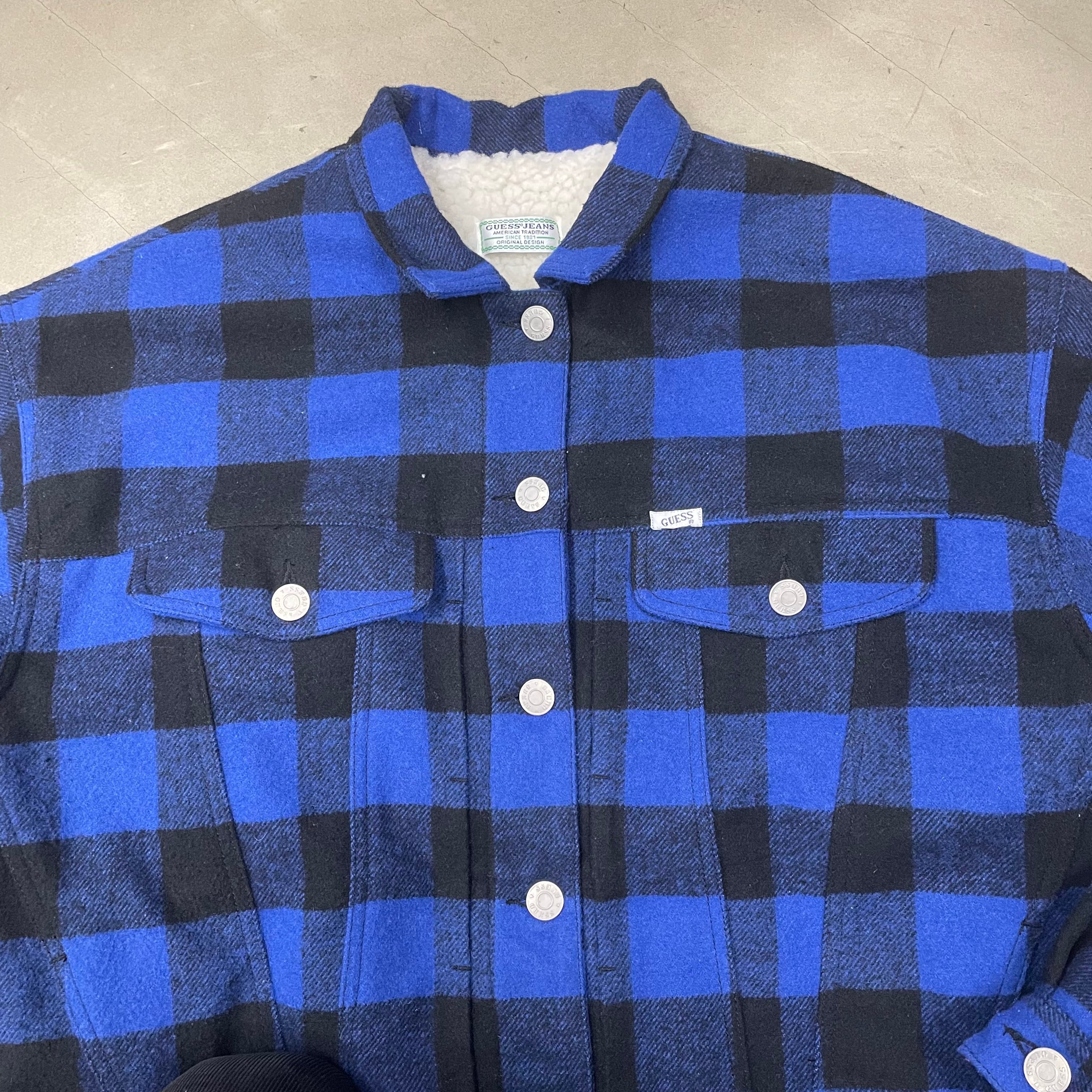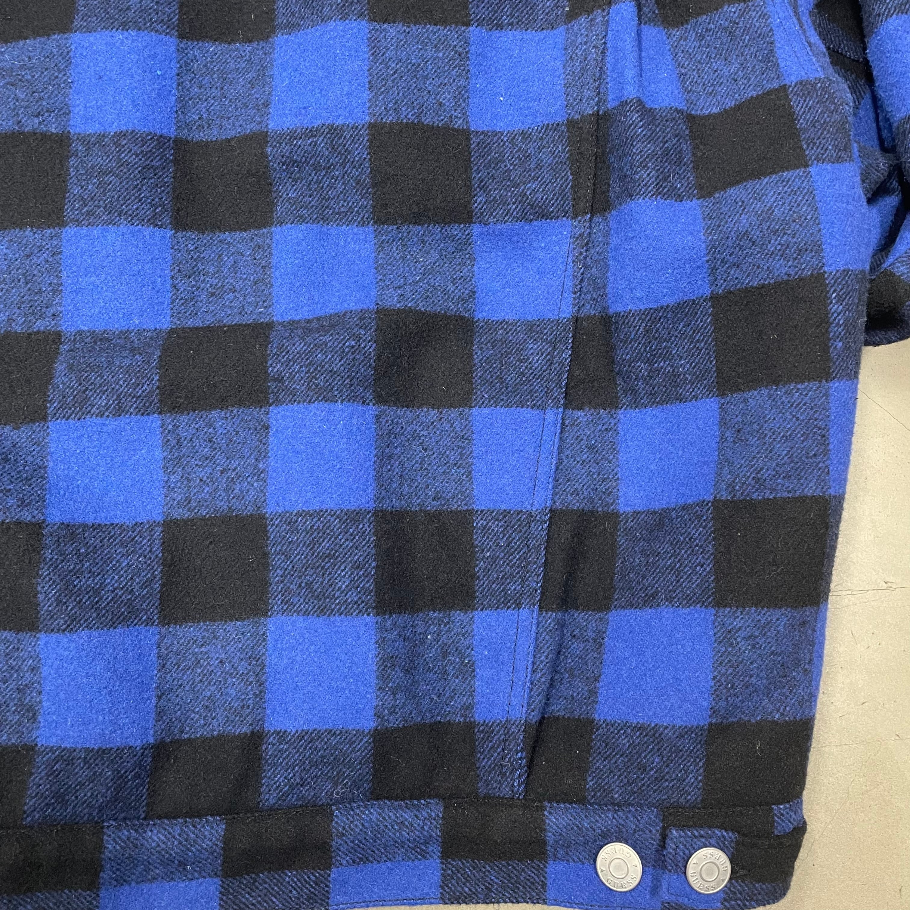 GUESS バッファローチェック ボアジャケット ゲス 青×黒 トラッカータイプ