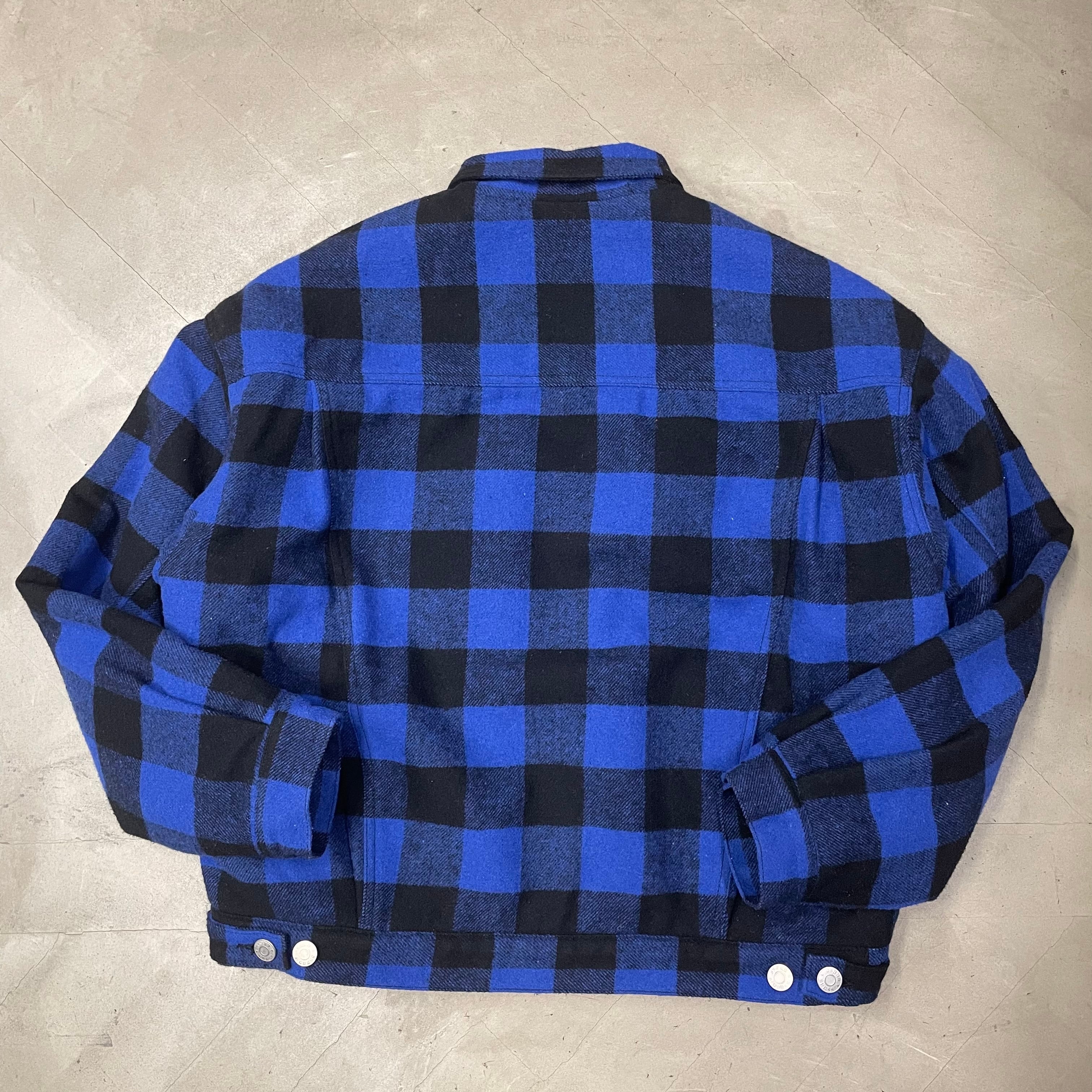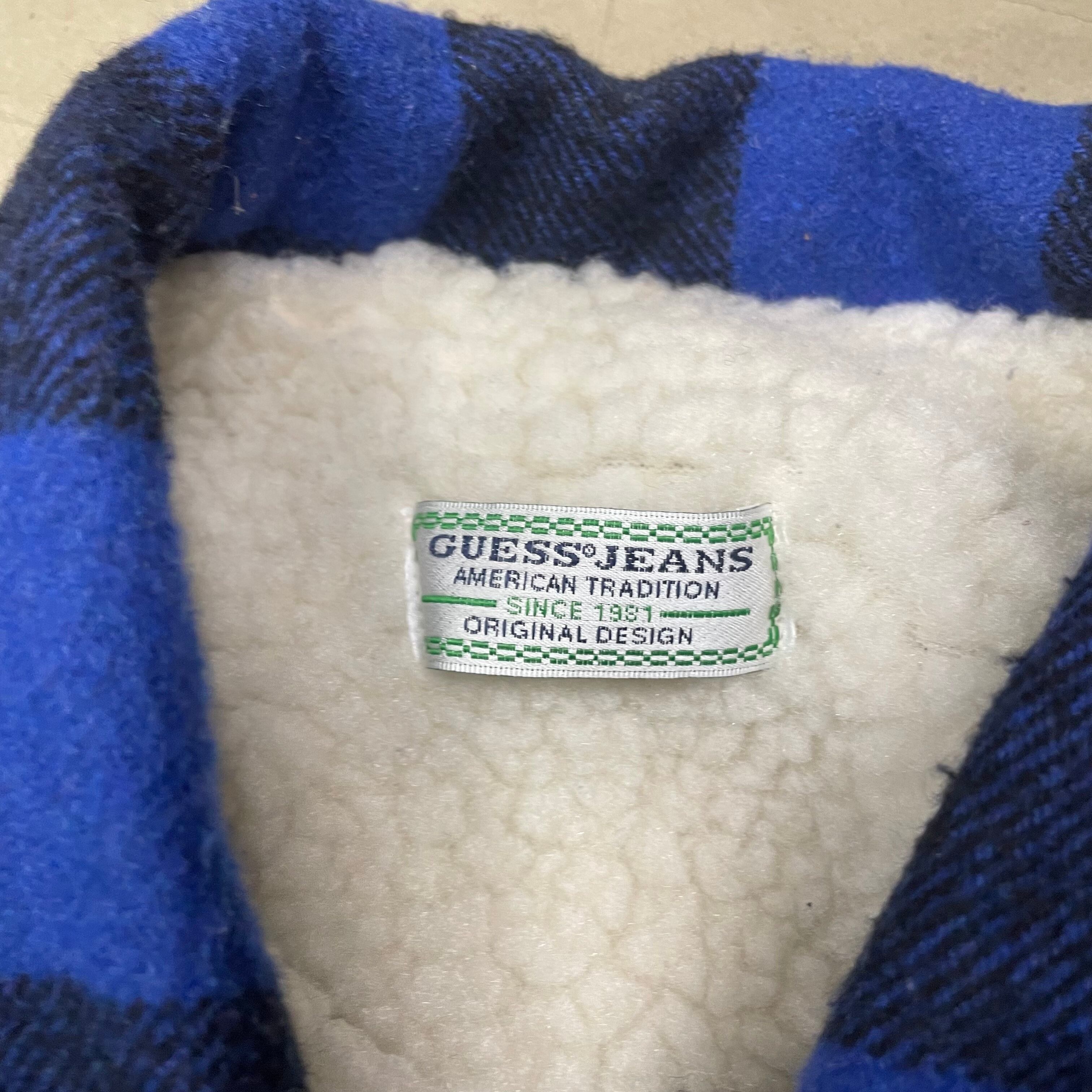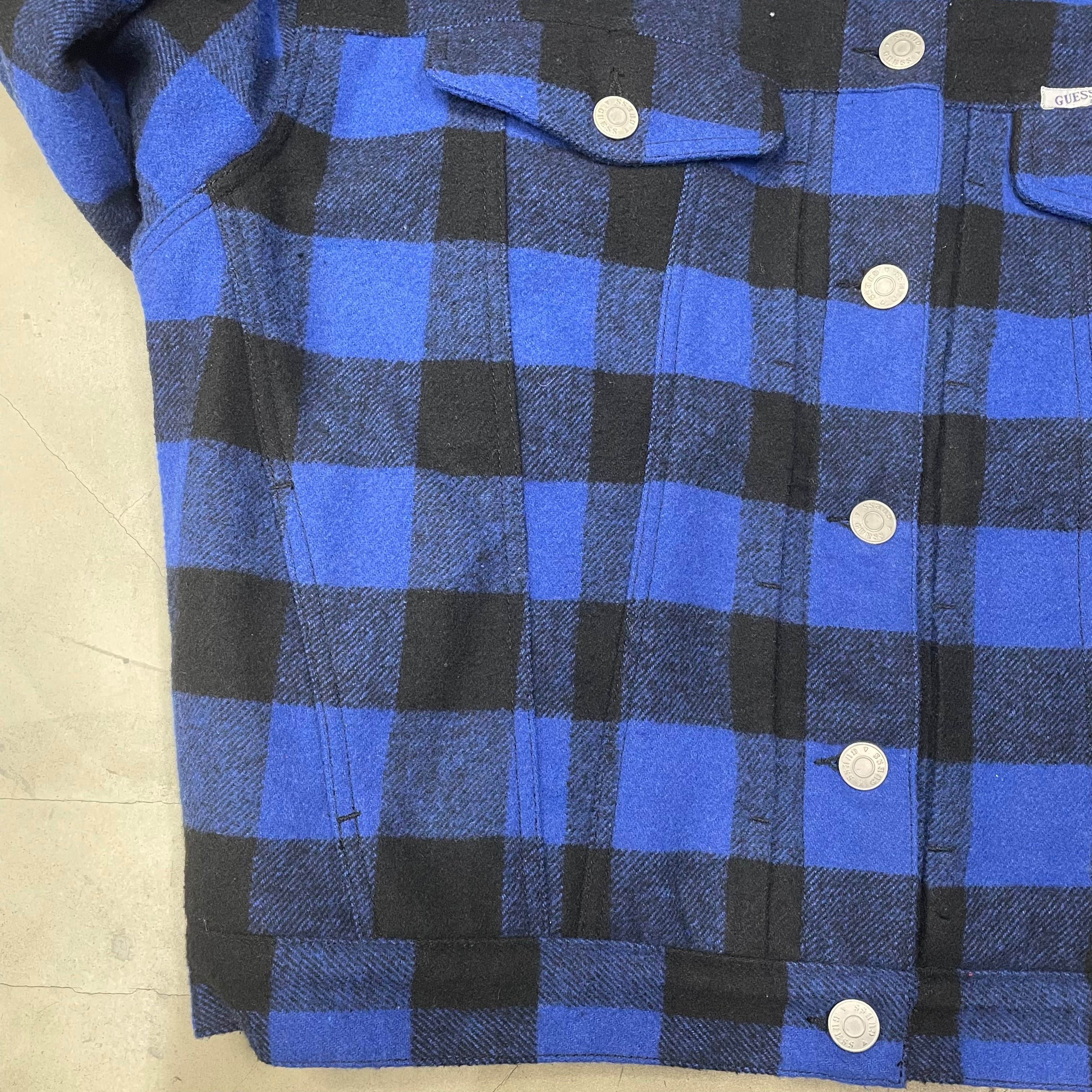 GUESS バッファローチェック ボアジャケット ゲス 青×黒 トラッカータイプ