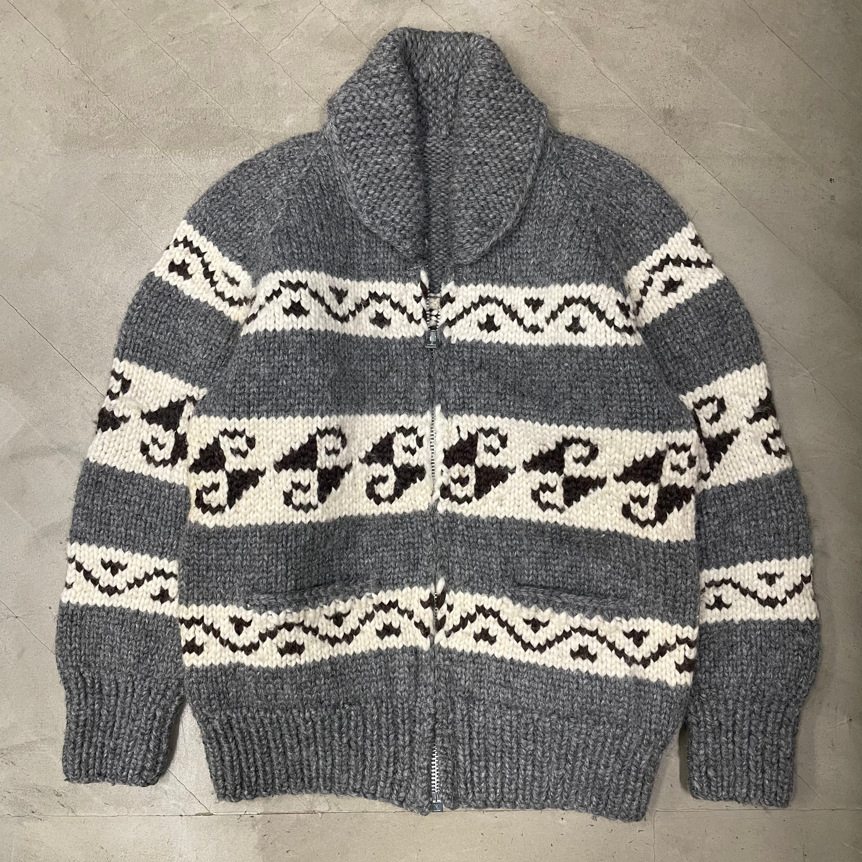 70s 80s カナダ製 カウチンニット セーター ACME社 アルミジッパー