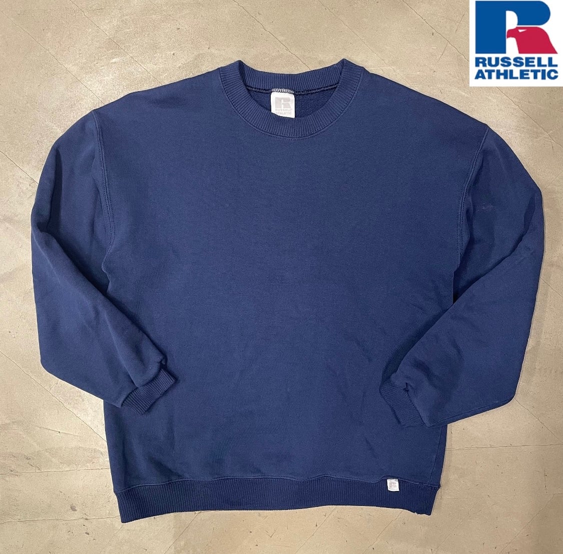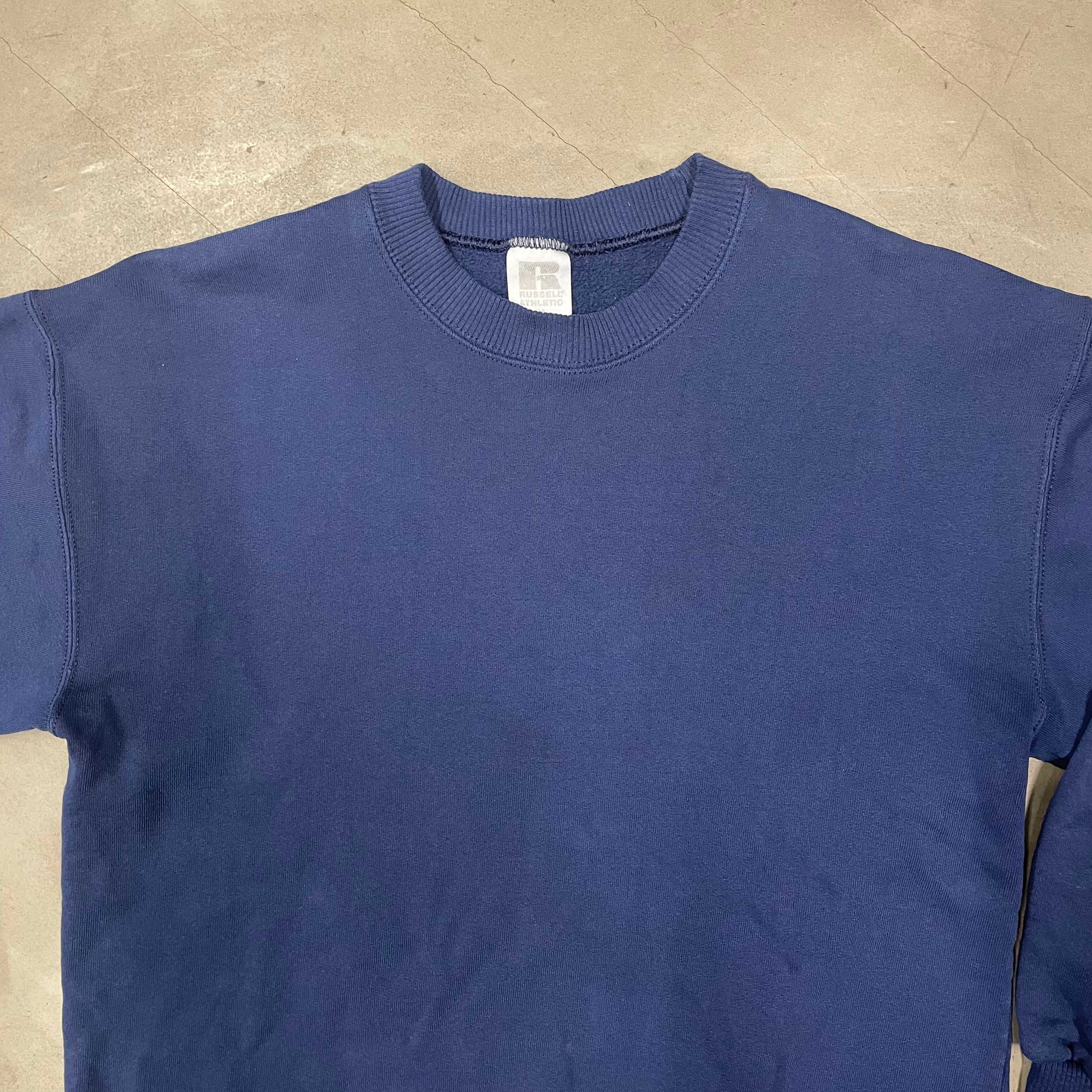 90s RUSSELL ATHLETIC 無地スウェット USA 針抜きリブ ネイビー ラッセルアスレチック