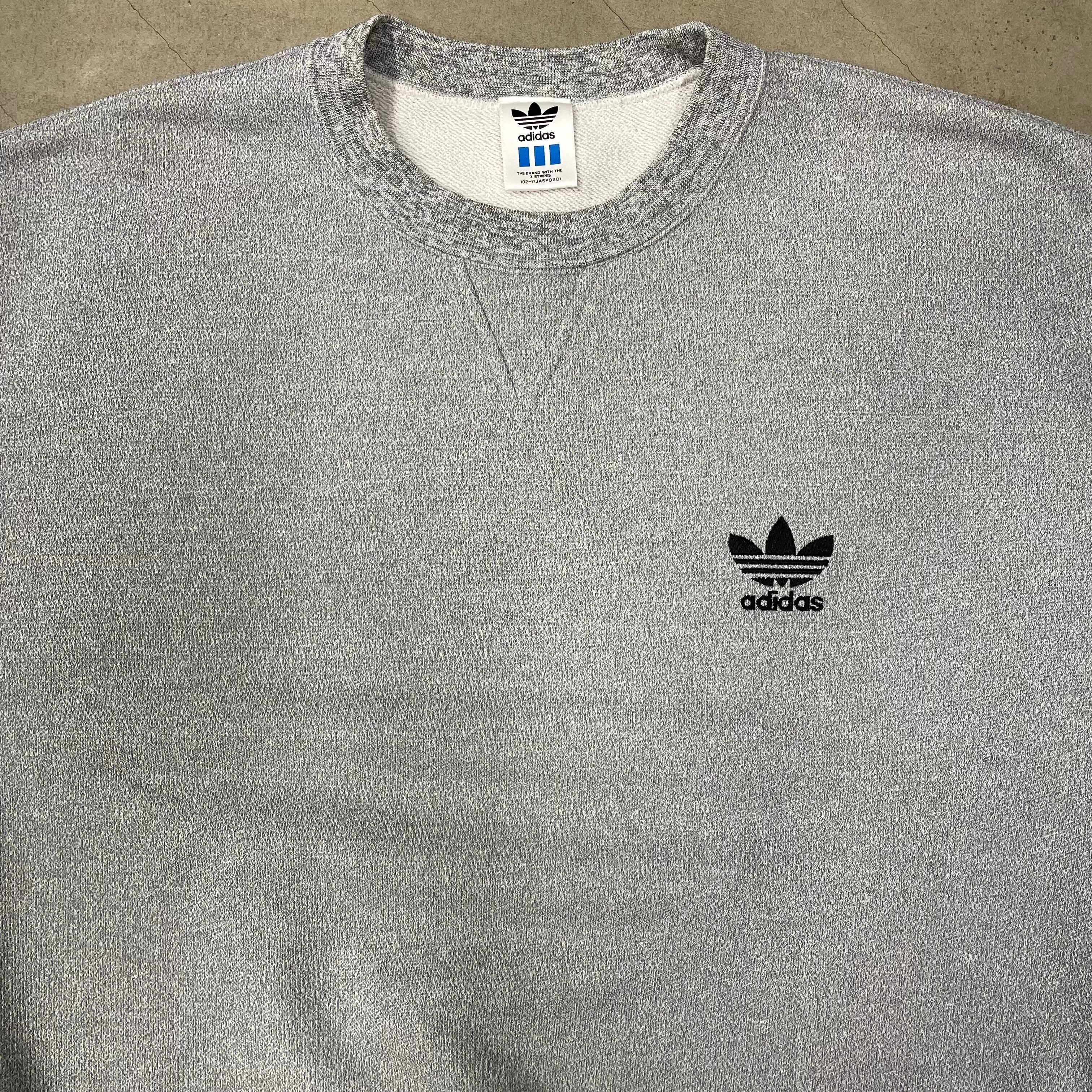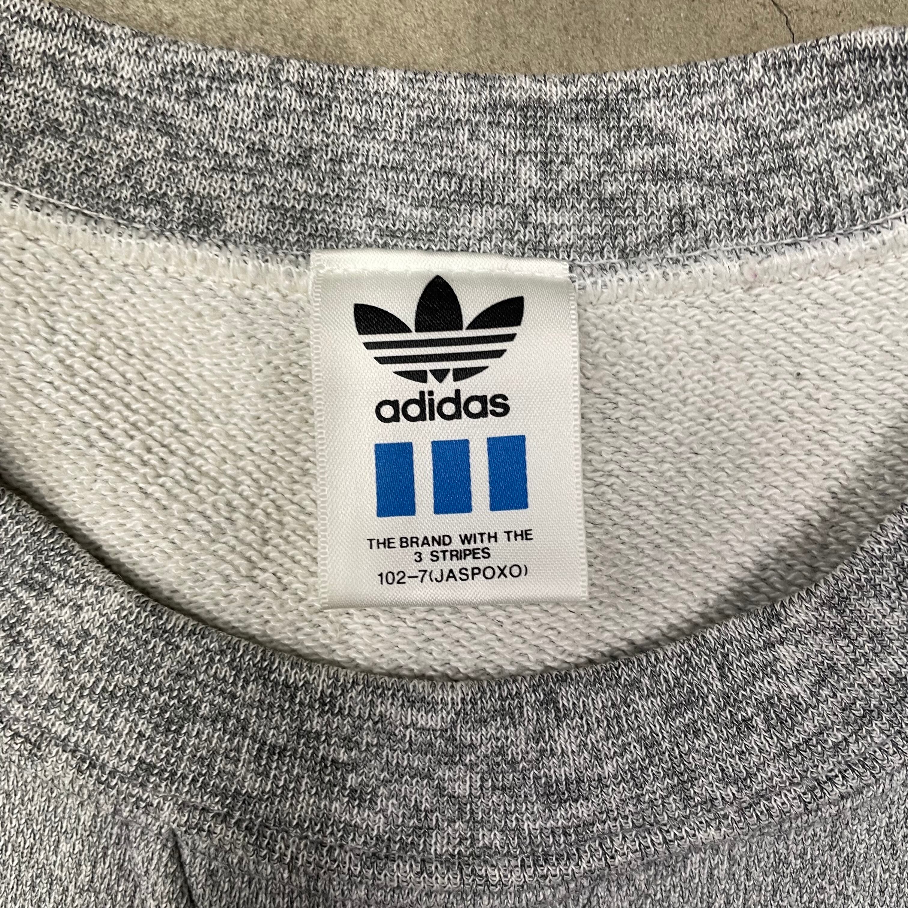adidas スウェット グレー 刺繍ワンポイントロゴ トレフォルロゴ アディダス