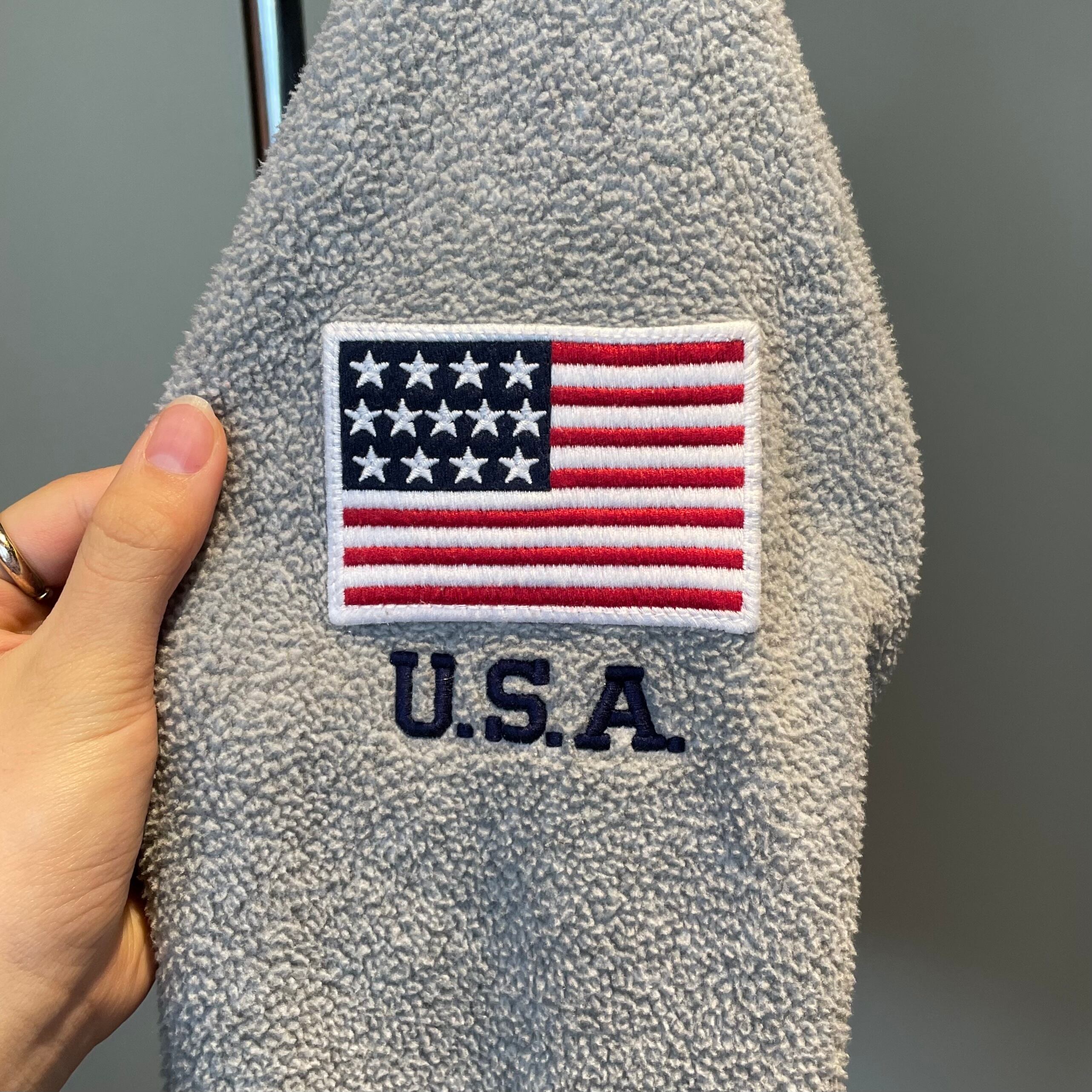 フロント、左腕部分の刺繍が魅力。もこもこフリース秋冬大活躍間違いなしです!