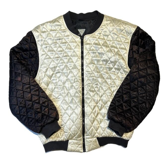 80S vintage BE-BOP BAGGY キルティングブルゾンmade USAジャケットジップアップフルジップキルトジャケットUSA製古着ビンテージヴィンテージ80年代ブラックホワイトスタジャン