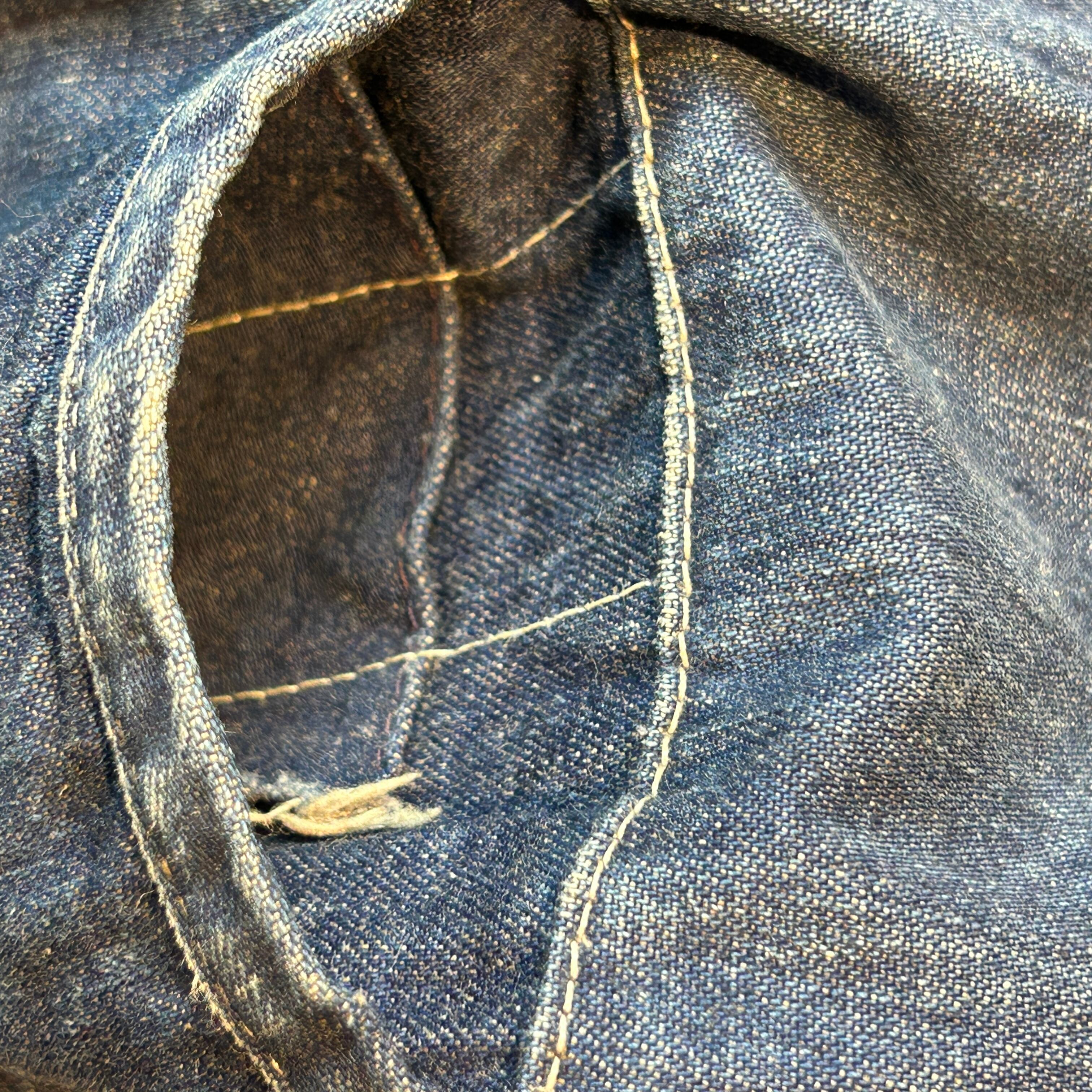 写真同様に多少の汚れがまたフェード感が最高です。左ポケットの中が3つに分かれているのですがら一箇所破れが見られます。表面から見てダメージはありません。