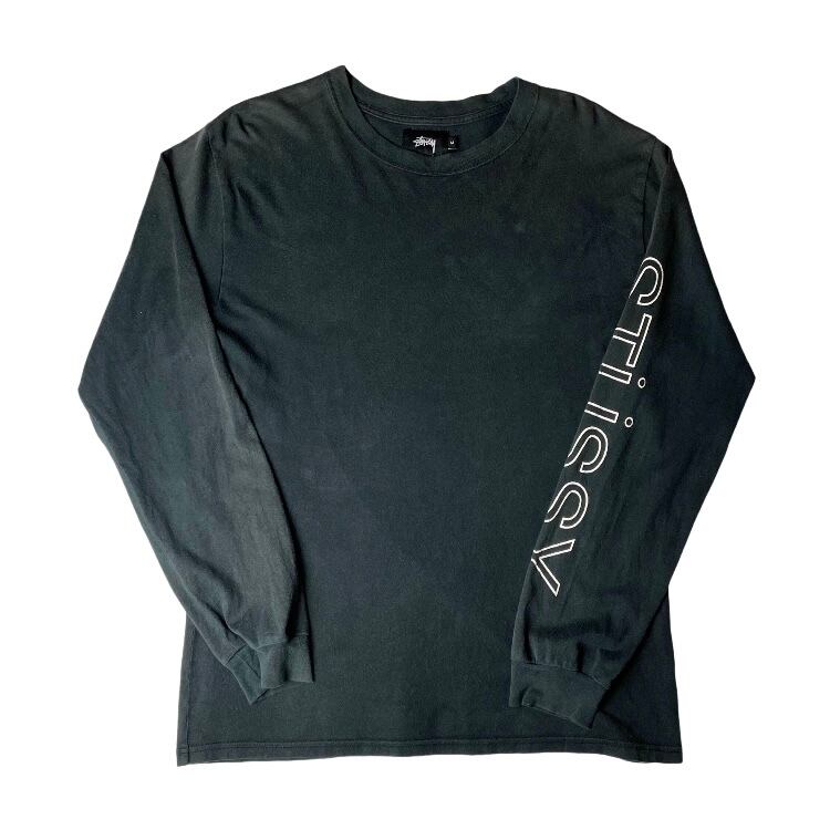 ステューシーブラックフェード袖プリントロングTシャツ