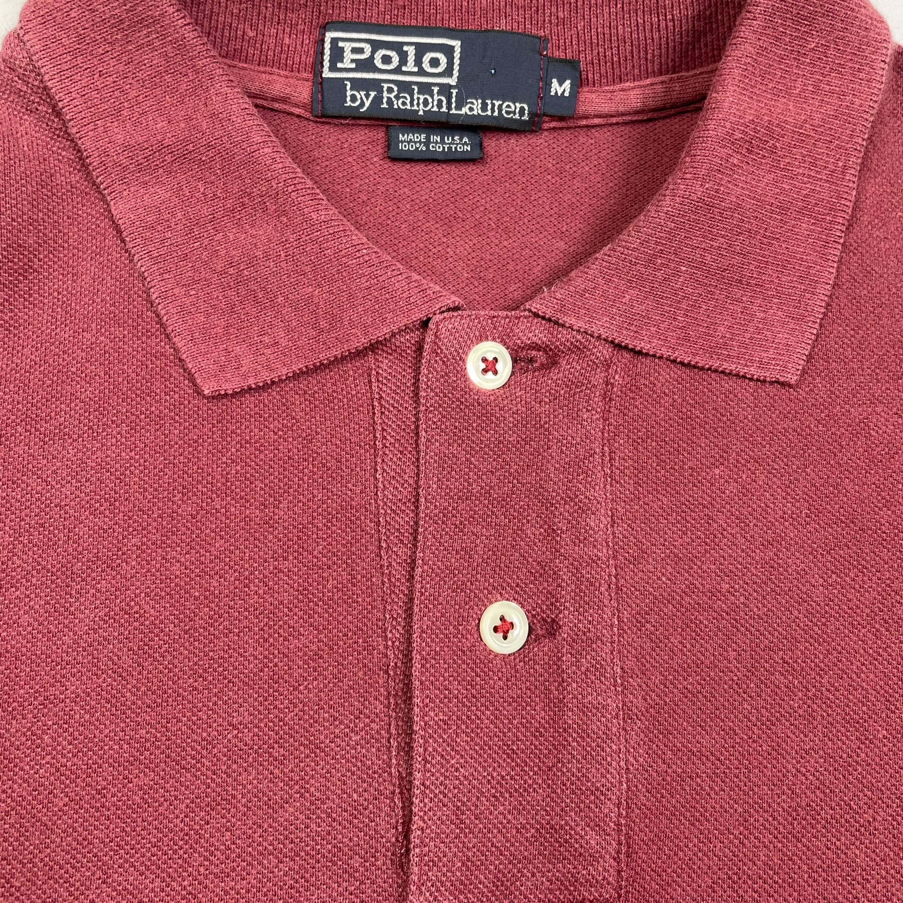 USA製90年代Ralph Laurenラルフローレンワインレッドフェードポロシャツ半袖